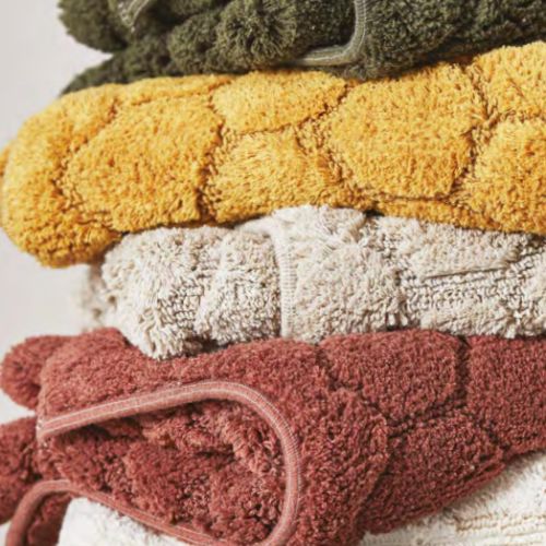 Tappeto di alta qualità in puro Cotone a pelo raso, trattamento antiscivolo. Utilizzabile anche con riscaldamento a pavimento.